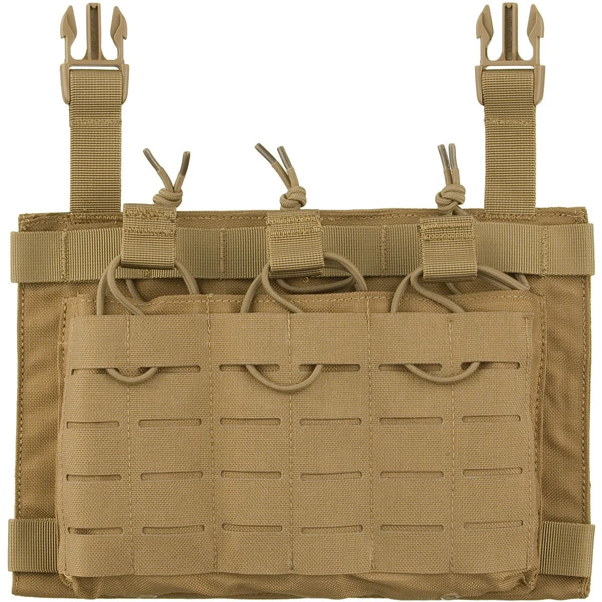 - Three open top mag pouches with bungee pulls
